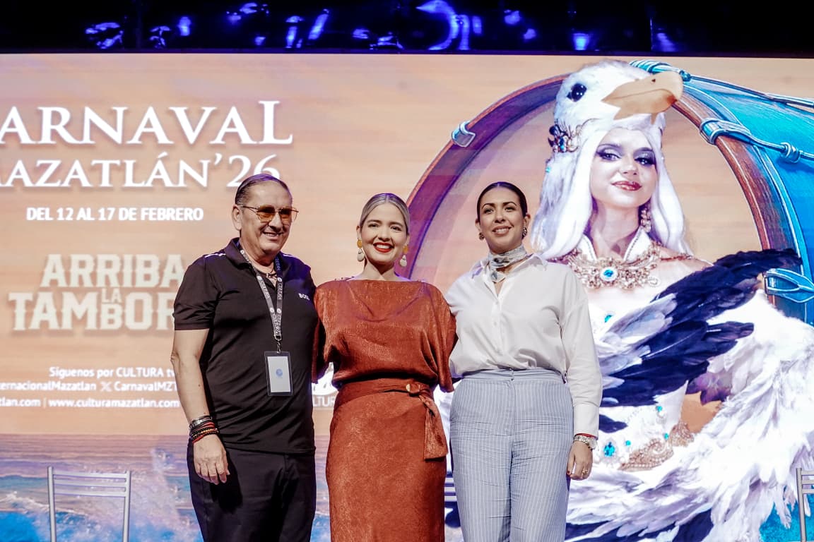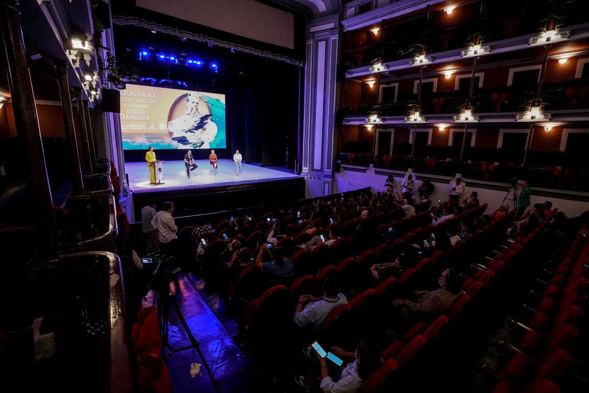 El Teatro Ángela Peralta fue el escenario de la presentación oficial de los artistas que participarán en las coronaciones del Carnaval Internacional Mazatlán 2026: ¡Arriba la Tambora!, que se celebrará del 12 al 17 de febrero.