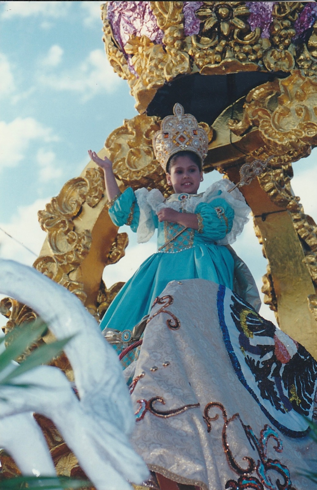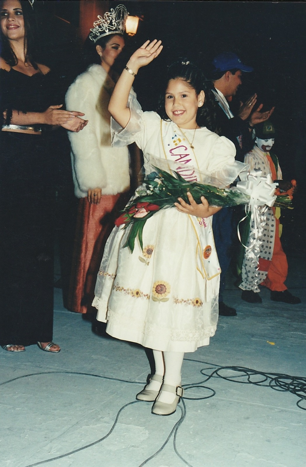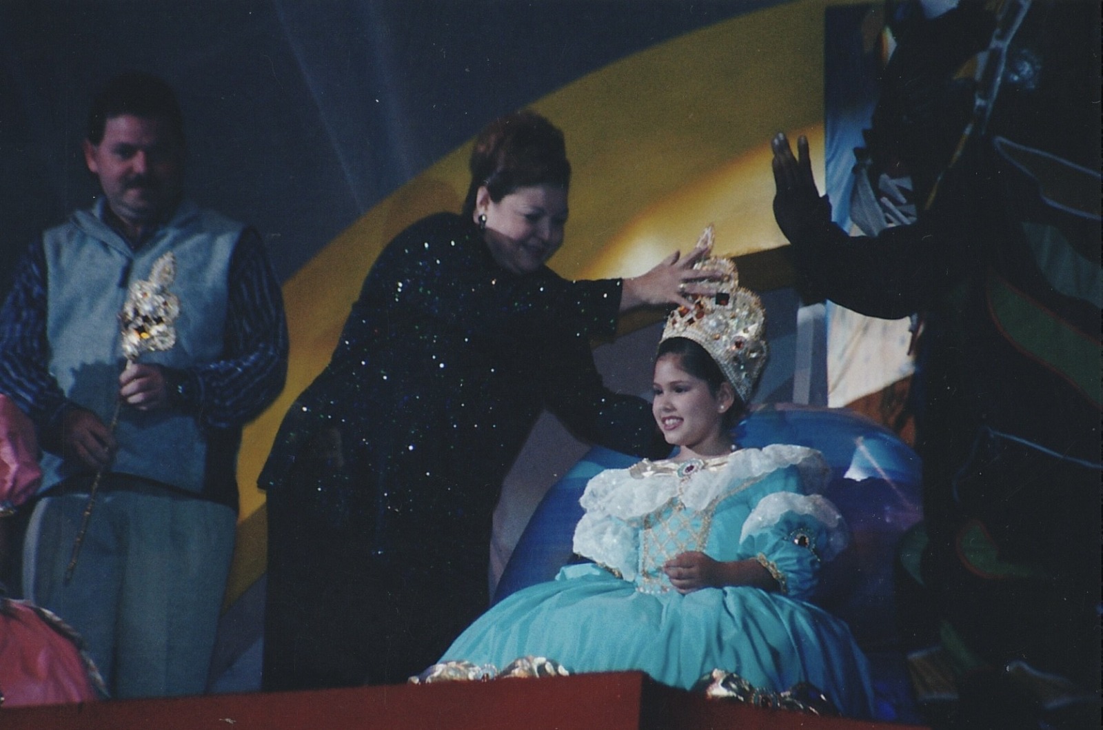 De su participación en el Desfile de Carnaval recuerda una corona más grande que ella, una cauda larguísima —como salida de un cuento— y, sobre todo, el apoyo absoluto de su familia: sus papás caminando junto al carro alegórico durante todo el desfile, sus hermanos, los aplausos, las porras, las manifestaciones de amor que hicieron de aquel reinado algo inolvidable.