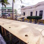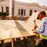 “Hoy se inició la instalación del segundo módulo de baños en el escudo, se levanta la estructura, la base y los pisos, luego entran los plomeros a instalar los mingitorios e inodoros, todas las mangueras, y conexiones que llevan a los registros de Jumapam”, explicó.