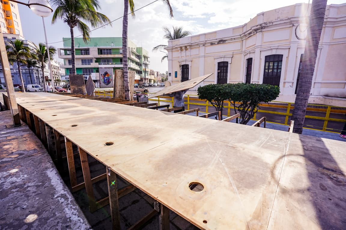 Durante las últimas semanas el Departamento de Operaciones ha realizado trabajos de mantenimiento a los arcos de entrada de olas altas, limpiando y desmontando piezas en carros alegóricos, e iniciarán en los próximos días la construcción de mamparas que se utilizarán en las diferentes coronaciones en el estadio Teodoro Mariscal.