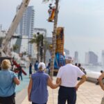 Este martes la jornada fue intensa sobre la Av. Del Mar. Comenzó con la colocación de la escultura ¡Arriba la Tambora!, en el cruce con Rotarismo; después, fue instalada Sinfonía del Pacífico en el cruce con Insurgentes. La instalación de ambas obras fue supervisada por su creador, Henry Wilson.