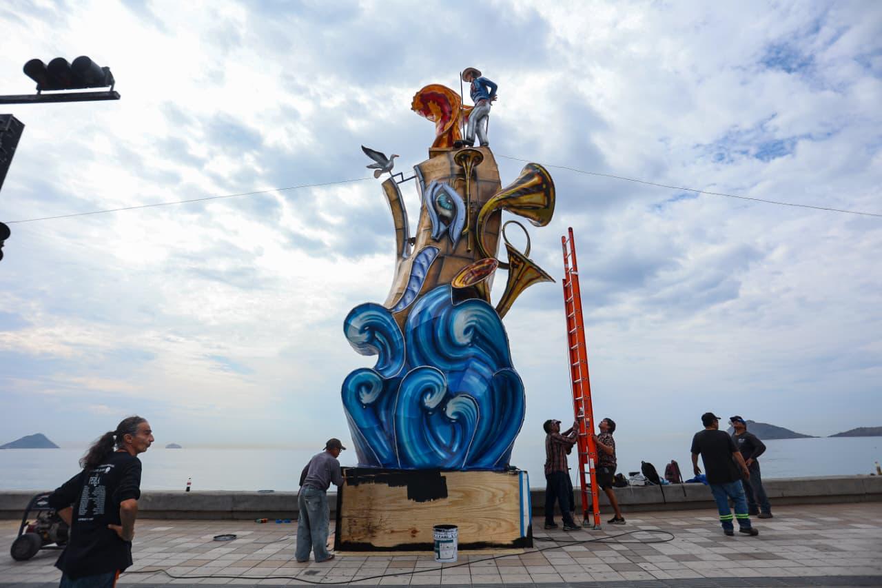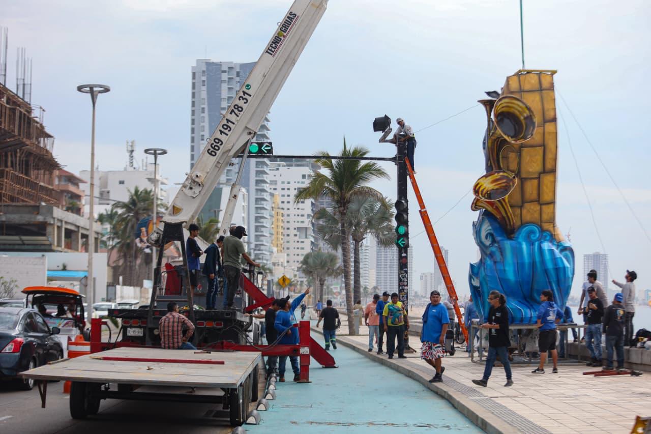El Niño (creación del equipo Ninots que lidera José Ángel Trujillo y Juan José Boronat) adorna el malecón a la altura de la calle 5 de Mayo; Raíz y Tradición (de Jorge González Mata) toca la tambora frente al mar en el cruce con Lola Beltrán y El solista del estero (escultura de Henry Wilson) brilla con luz propia como embajador absoluto de la riqueza marina.