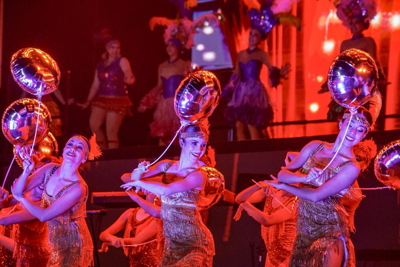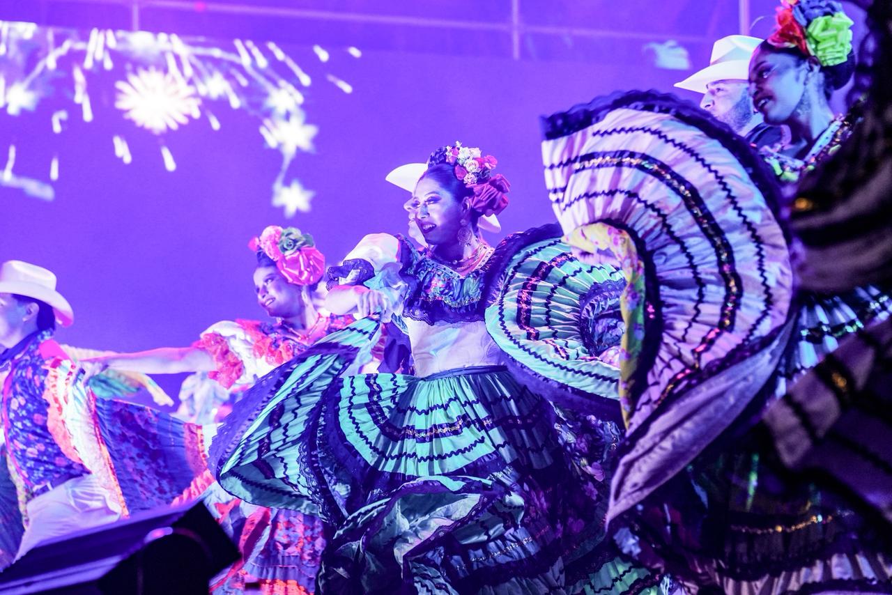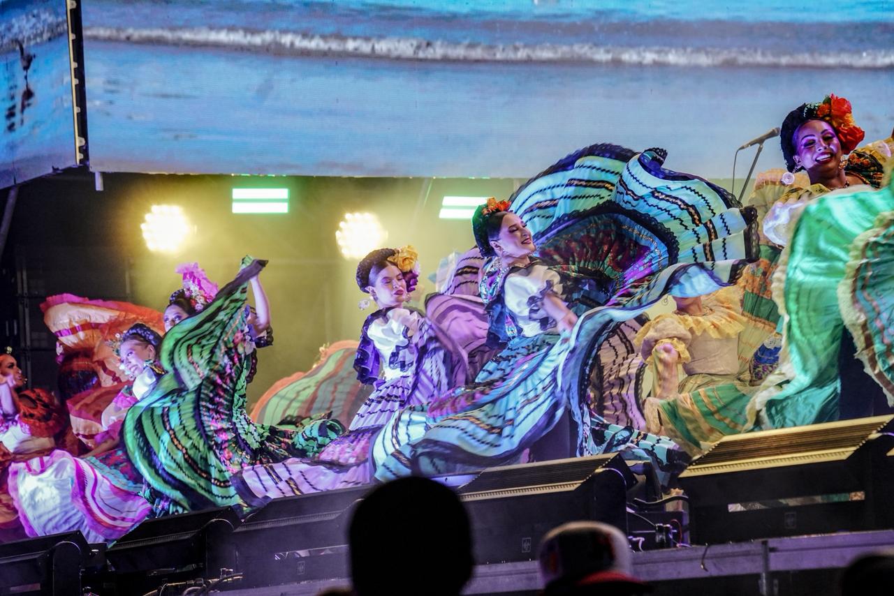 A lo largo del espectáculo producido por el Instituto de Cultura de Mazatlán, la danza recreó distintas etapas del Carnaval y referencias visuales de mediados del siglo XX, con coreografías que ocuparon escenario y rampas, llenando el recinto de color, ritmo y tradición.