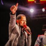 “El Gigante de la Banda” puso a cantar al público con clásicos como: “Mi gusto es”, “Leña de Pirul”, “El Palomito”, y “Un rinconcito en el cielo”, para después junto a “El Flaco” interpretar “Soy de Mazatlán”, causando euforia entre los presentes.