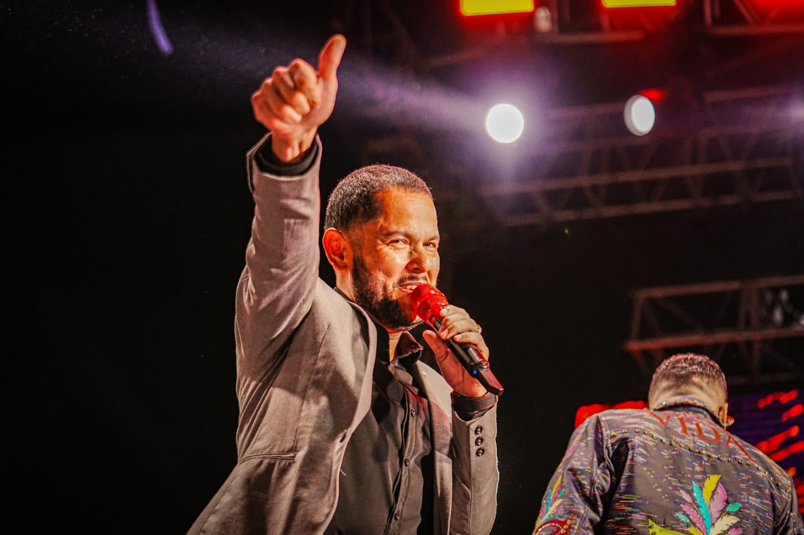 La fiesta junto al mar comenzó a las 11:00 PM y los primeros en salir al escenario fueron Julio Preciado y Luis Ángel “El Flaco”, quienes fusionaron su voz para iniciar el show con puros éxitos.