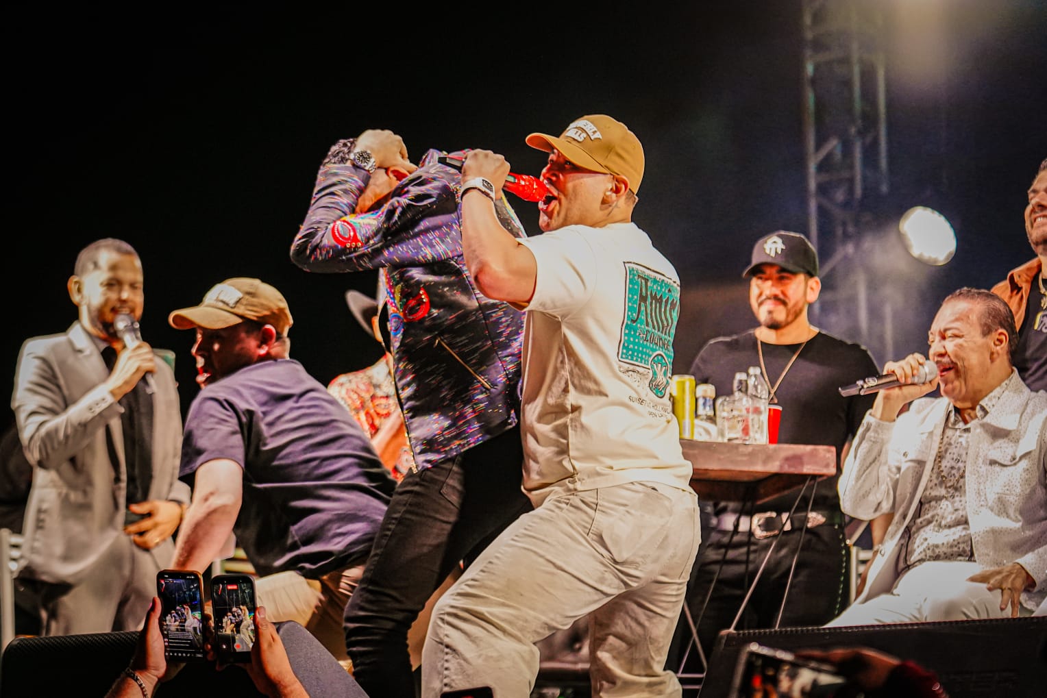 Conforme avanzó el concierto desfilaron sobre el escenario artistas invitados como “ El Yaki”, quien interpretó uno de sus más grandes éxitos cuando estuvo en Banda El Recodo “Te presumo”; Toño Lizárraga deleitó con “Derecho de antigüedad” y “Vuela paloma”, mientras que Max Peraza entonó “Cual a dios”.