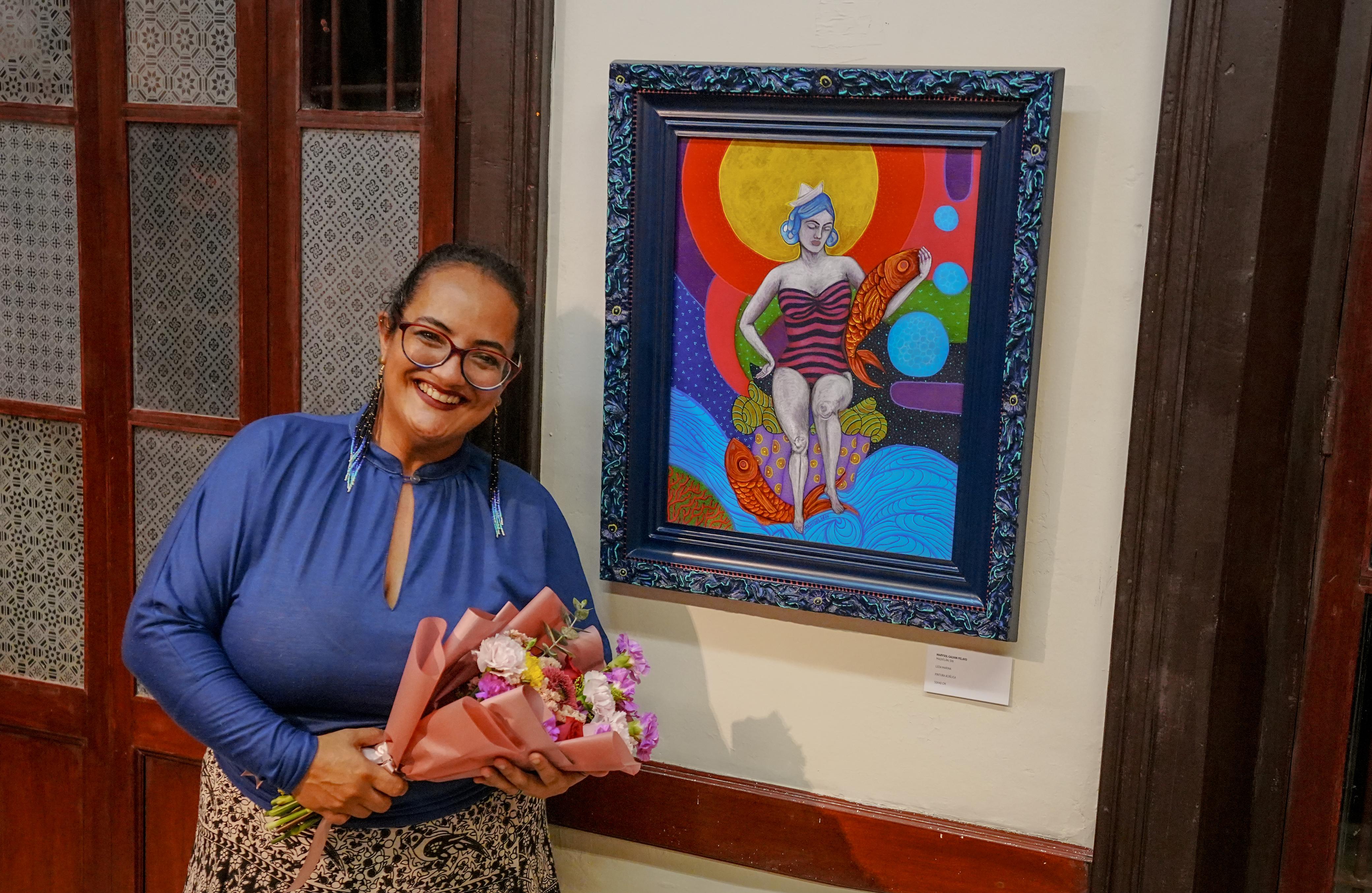 Briseida Flores Leyva, reconocida por su valiosa aportación a la plástica regional con su obra “Donde aún germina”.